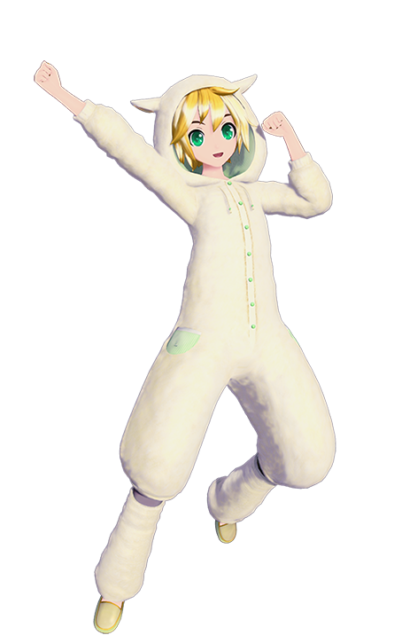 This module was created in collaboration with the Piapro consumer-generated media (CGM) website. This alpaca hoodie for Len is a perfect complement to Rin's. It's warm and soft, with a huggability over 1000! — Website description[ 1]