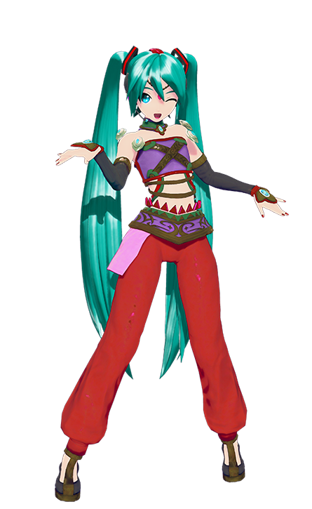Arabian also appeared in Hatsune Miku: Project DIVA Extend where it is unlocked after clearing "Palette " on Easy difficulty and has the same price from Project DIVA 2nd (or if the Module is already obtained in Project DIVA 2nd , it can be imported over to Project DIVA Extend at no cost). In Hatsune Miku: Project DIVA Future Tone , the Module is included in the Future Sound song pack and can be bought for 300 VP. It is also featured in Hatsune Miku: Project DIVA MegaMix , with its appearance modified to include the ToonShader graphics.