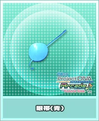 Blue Eyepatch was featured once again in Hatsune Miku: Project DIVA X where it can be obtained as a random drop after clearing a song in Cloud Requests. It is attributed with the Aura Cool and gives a +5% Voltage bonus when used in a song attributed with the same Aura. It will also give various Voltage bonuses when paired with other specific Accessories: