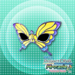 Butterfly Mask was featured once again in Hatsune Miku: Project DIVA X where it can be obtained as a random drop after clearing a song in Cloud Requests. It is attributed with the Aura Elegant and gives a +5% Voltage bonus when used in a song attributed with the same Aura. It will also give various Voltage bonuses when paired with other specific Accessories:
