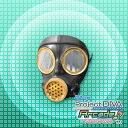 Gas Mask was featured once again in Hatsune Miku: Project DIVA X where it can be obtained as a random drop after clearing a song in Cloud Requests. It is attributed with the Aura Cool and gives a +5% Voltage bonus when used in a song attributed with the same Aura. It will also give various Voltage bonuses when paired with other specific Accessories: