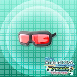 Goggles was featured once again in Hatsune Miku: Project DIVA X where it can be obtained as a random drop after clearing a song in Cloud Requests. It is attributed with the Aura Cool and gives a +5% Voltage bonus when used in a song attributed with the same Aura. It will also give various Voltage bonuses when paired with other specific Accessories: