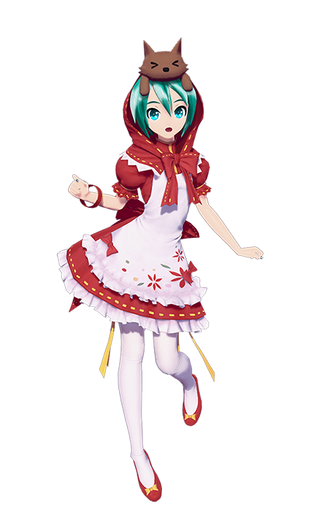 "Little Red" is a fan-favorite module from the PSP® installments of Project DIVA 2nd . Its Project DIVA F series version is cuter than ever! The wolf (?) on top of her head really brings you into the fairy tale. "But Grandmother, what big ears you have." — Website description[ 1]