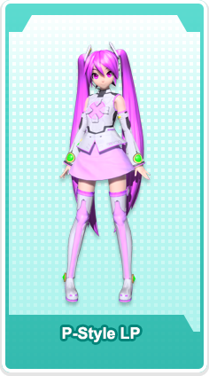 P-Style LP appears again in Hatsune Miku: Project DIVA Extend with the same unlock conditions and price from Project DIVA 2nd (or if the Module is already obtained in Project DIVA 2nd , it can be imported over to Project DIVA Extend at no cost). In Hatsune Miku: Project DIVA Future Tone , the Module is available in the Prelude demo and can be bought for 150 VP. The Module makes a return in Hatsune Miku: Project DIVA MegaMix+ with the same unlock price from Project DIVA Future Tone .